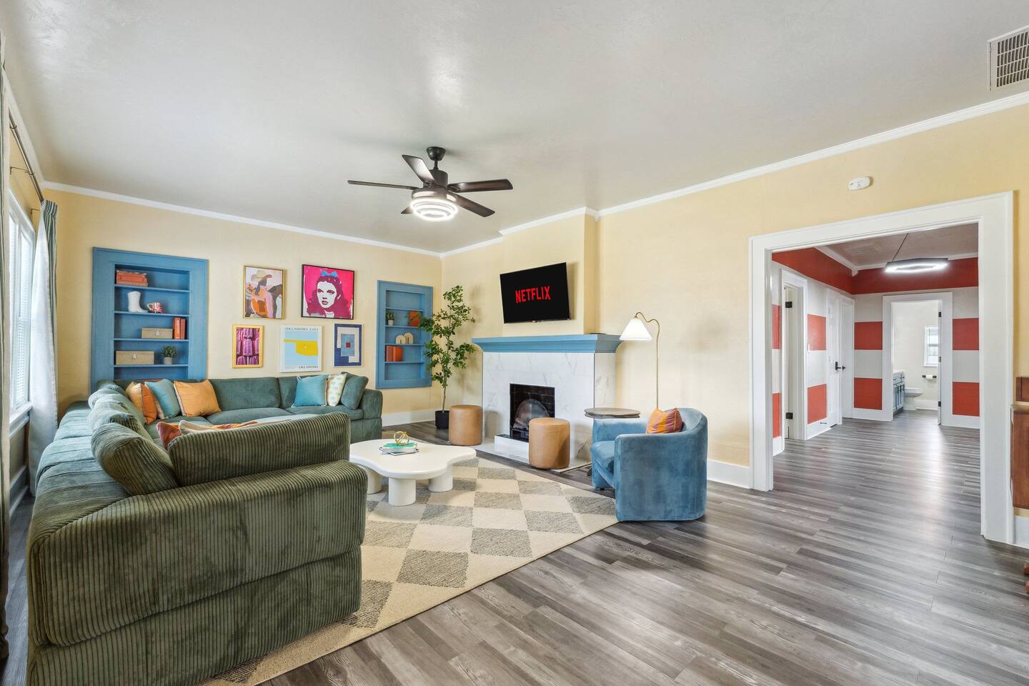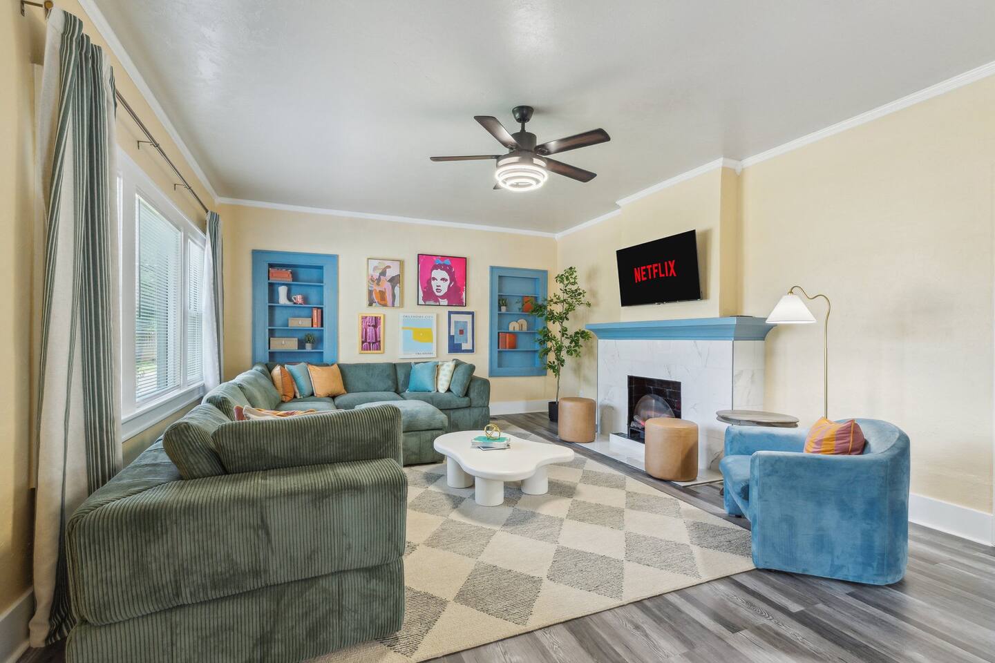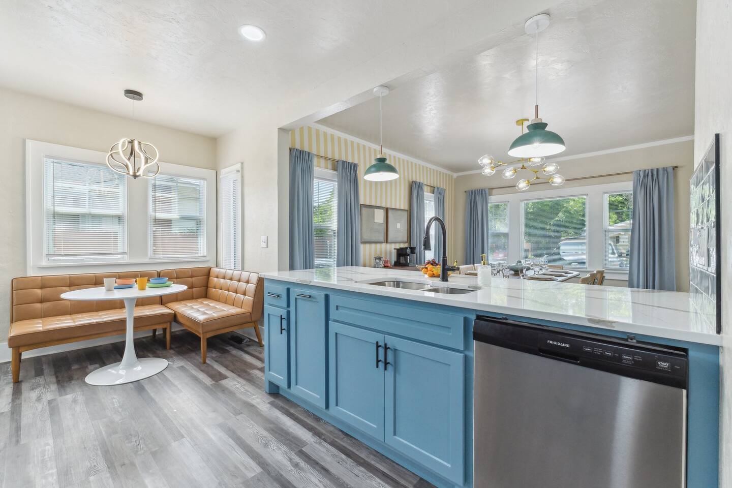 Welcome to Bricktown Bungalow — your stylish, family-friendly getaway just minutes from everything in Downtown OKC! Enjoy a relaxing hot tub, your own pickleball court, firepit, and private game lounge with arcade games, billiards, and foosball. Sleeps up to 10 with 3 spacious bedrooms (5 beds) and 2 full baths. 50 inch Roku TVs in every room. Cook with ease in the fully stocked kitchen or on the grill. Professionally designed for comfort, fun, and unforgettable memories.
